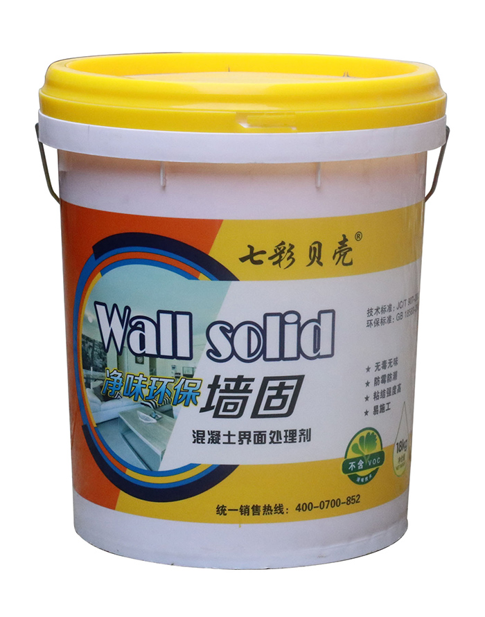墻固即聚合物混凝土界面處理劑,外觀為乳白色膠液。具有滲透性,能充分浸潤(rùn)墻面基層,使基層密實(shí),提高光滑基層界面附著力,粘結(jié)強(qiáng)度高,保證水泥拉毛牢固可靠,提高膩?zhàn)踊蚧覞{與墻面基層的粘結(jié)強(qiáng)度,有效防止找平層空鼓、開(kāi)裂,提高施工質(zhì)量,加快施工進(jìn)度,是裝飾裝修工程中不可缺少的配套材料。適用于混凝土、加氣混凝土和磚混墻面批刮膩?zhàn)踊蚰ɑ仪盎鶎拥慕缑嫣幚,適用于在墻面基層進(jìn)行人工“造毛”,即造水泥拉毛。